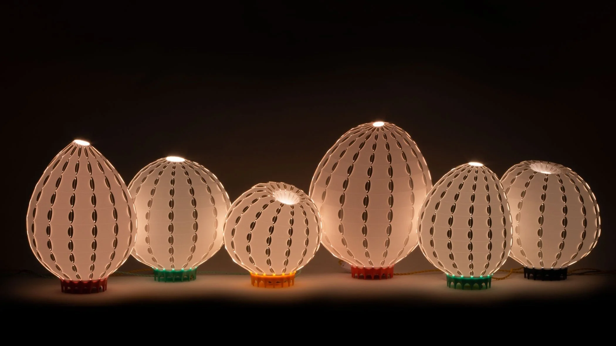 The Polyp Lamps explore organic expansion and irregularity in lighting, drawing inspiration from fruiting forms like apples, pears, and lemons. Echoing Akari Lamps, they soften built environments with playful, glowing silhouettes.